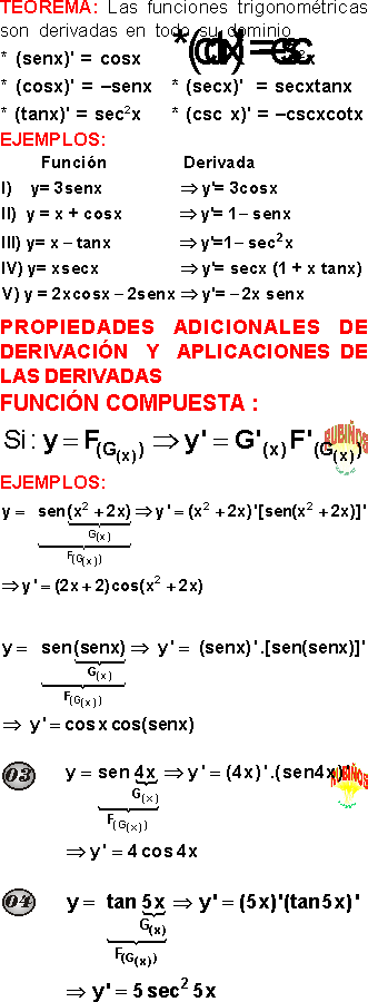 DERIVADAS DEL SENO COSENO TANGENTE COTANGENTE SECANTE COSECANTE EJERCICIOS RESUELTOS