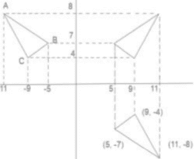 En el plano cartesiano , se tiene dibujado el triángulo ABC, tal que las coordenadas de los vértices son A(–11; 8) , B(–5; 7) y C(–9; 4). El triángulo, se proyecta al primer cuadrante por simetría, tomando como eje de simetría al eje Y, luego se vuelve a proyectar al cuarto cuadrante, pero tomando como eje de simetría al eje X. Determine la suma de todas las coordenadas de los vértices del último triángulo proyectado.