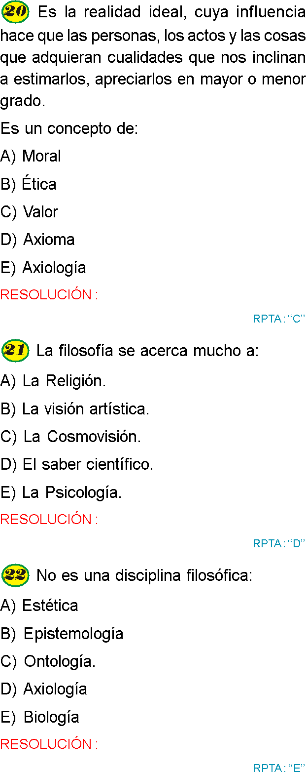 FILOSOFIA PREGUNTAS DEL EXAMEN DE ADMISION A LA UNIVERSIDAD RESUELTO CON CLAVES Y RESPUESTAS